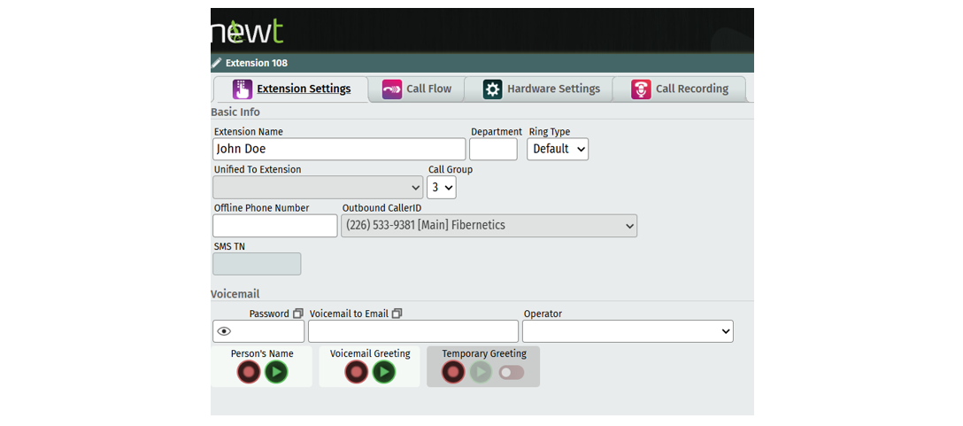 Your extension on the NEWT PBX can be accessed to make adjustments to your extension settings and access information.