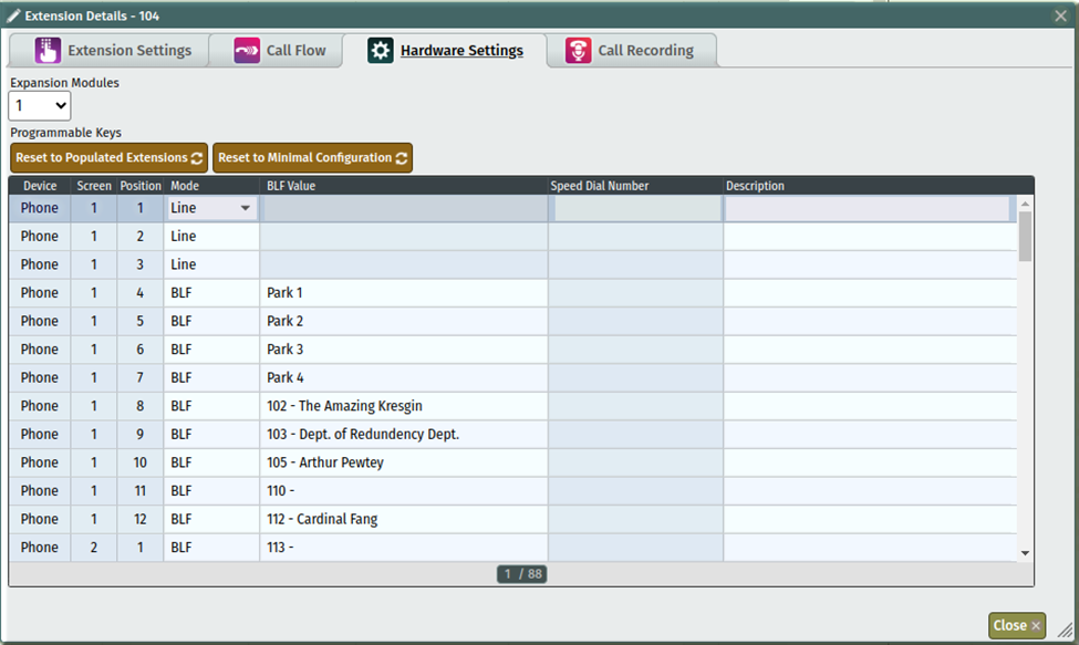 Once you’ve set up each key they way the user wants it, click save on this screen and then update the PBX.